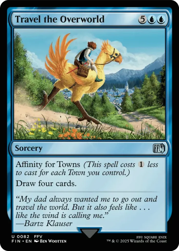 The deck is built around getting towns out as quickly as possible, and letting the man, the myth, the legend, Yoshi-P spawn Elemental after Elemental. Meanwhile you’re casting Travel the Overworld for hopefully every turn and putting Vana’diel Adventurer’s (Laboratory Maniac) into play to protect against decking.