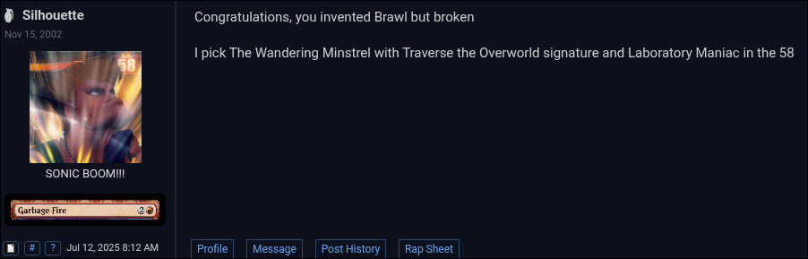 When I first came up with the Limit Breaker format, I had posted on the Something Awful Forums and this deck idea was the recommendation of Silhouette.