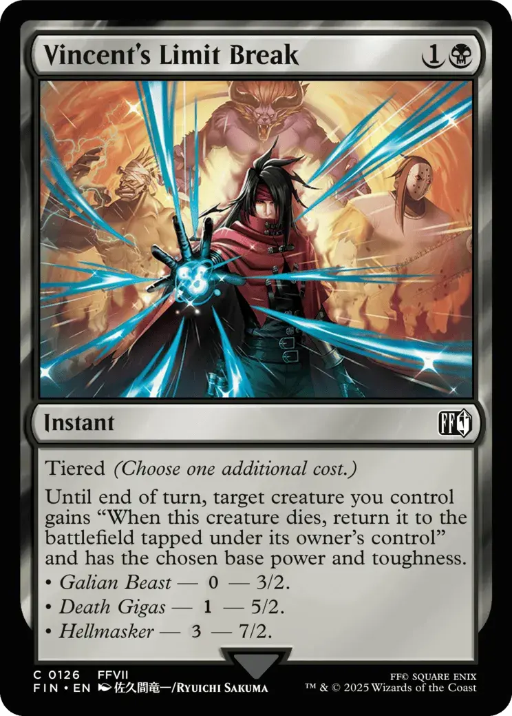 Papalymo Totolymo constantly sacrifices himself to make your opponents sacrifice their own creatures. Use Vincent’s Limit Break to bring him back and do some tax evasion, and also because it’s funny because Papalymo doesn’t even have his own Limit Break. Because it’s Vincent’s.